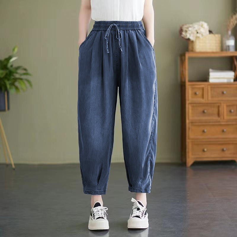 2025夏季冰涼感薄款九分高腰白搭哈倫褲新款萊賽爾天絲牛仔褲