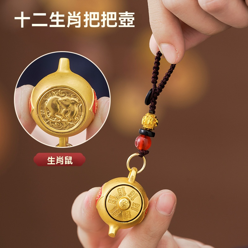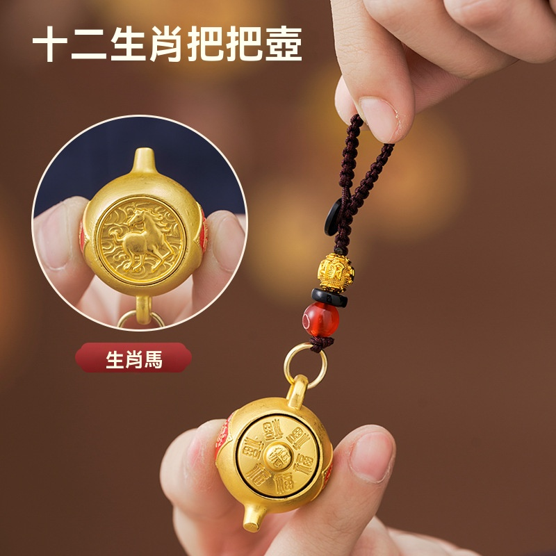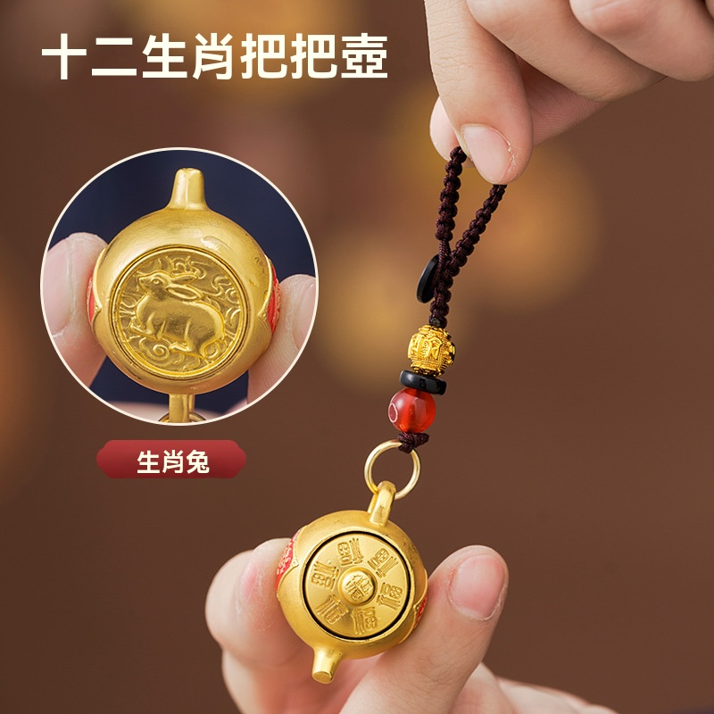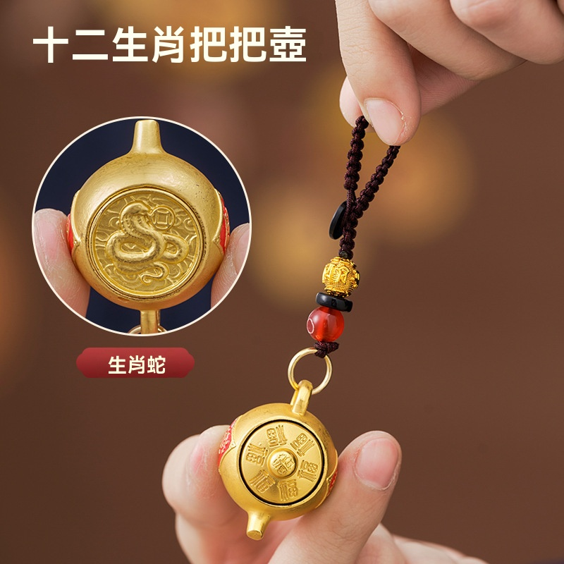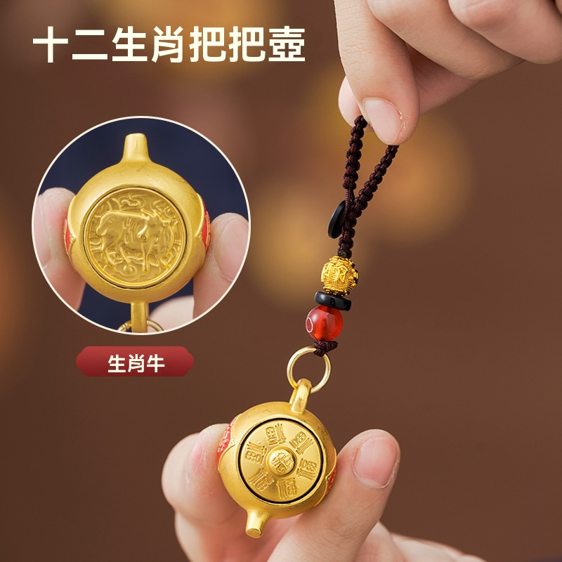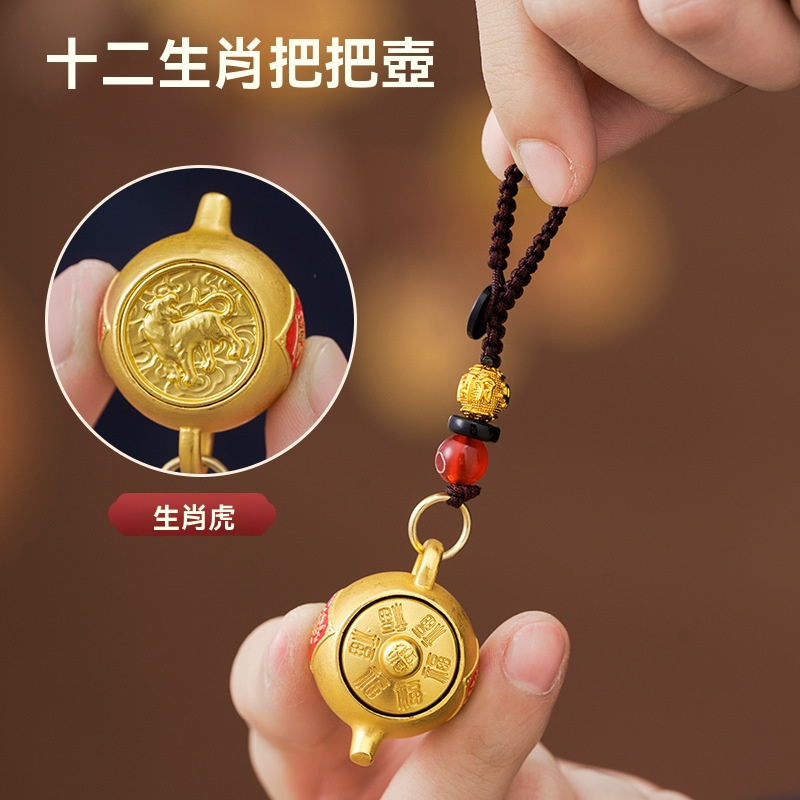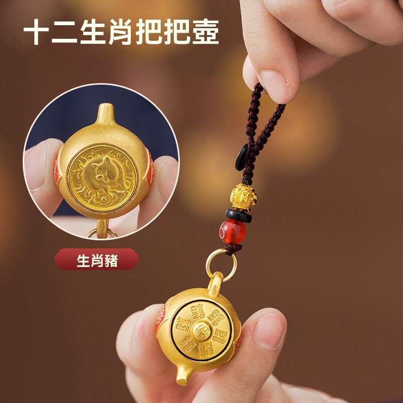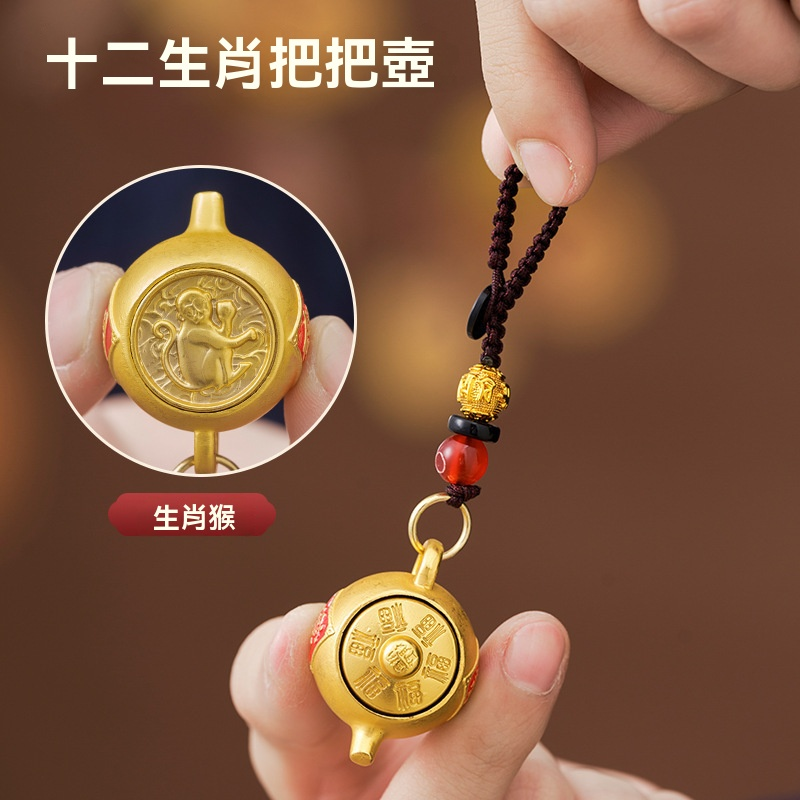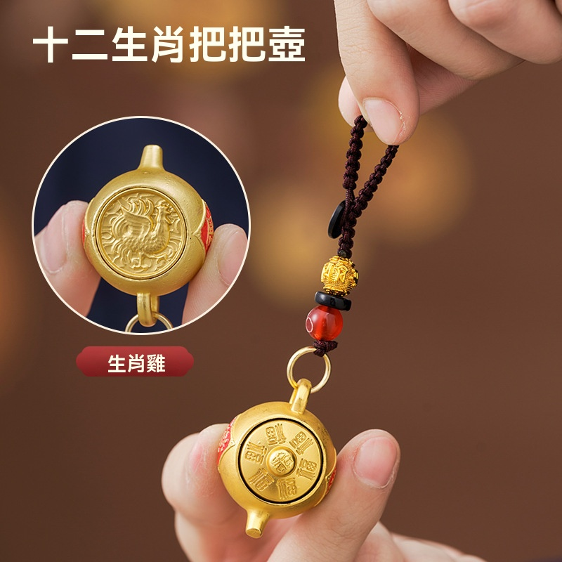 【爆款推薦】十二生肖東南西北把把壺鑰匙扣可旋轉招財鑰匙掛件