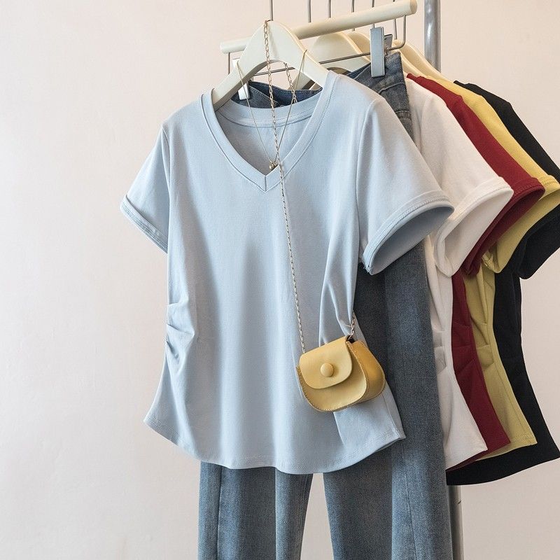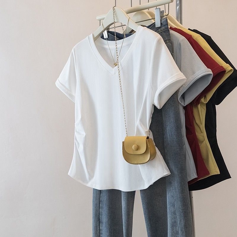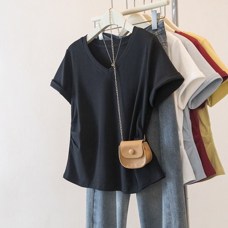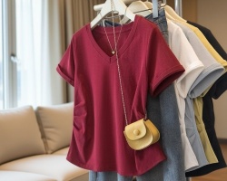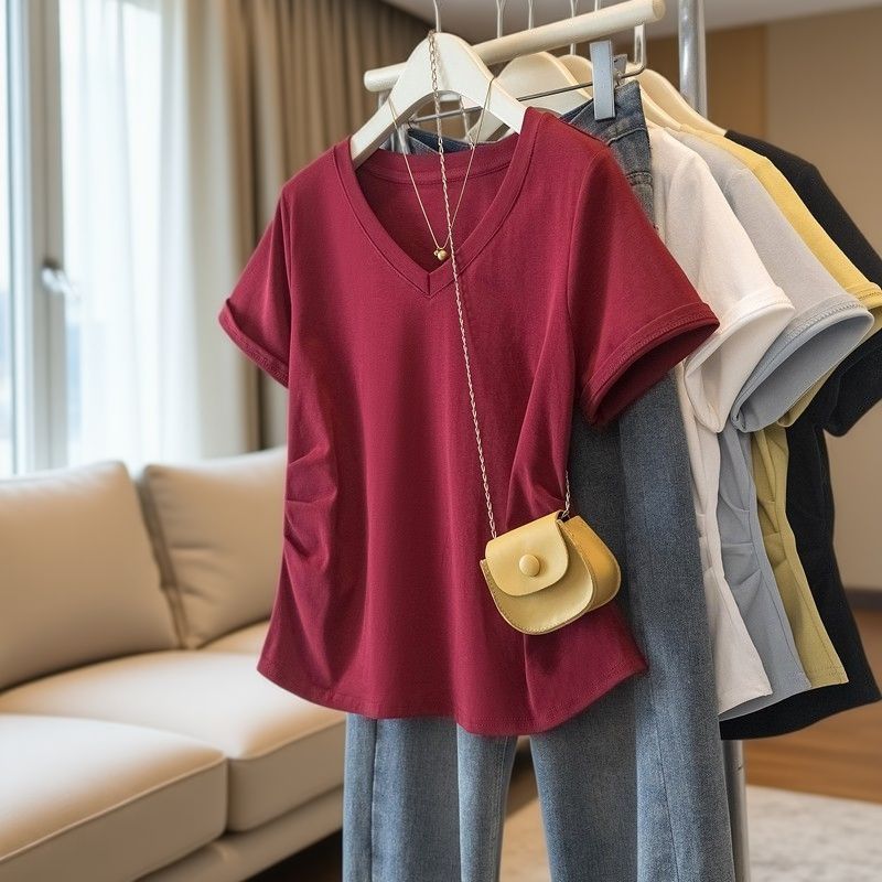 【熱銷爆款】質感酒紅V領T 柔軟面料 舒適透氣 簡約又百搭 輕鬆打造休閒範