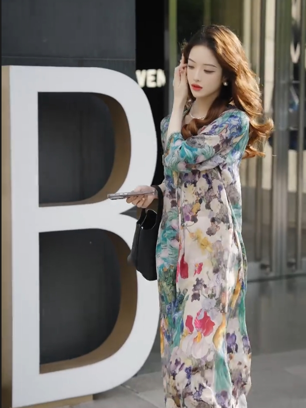 法式碎花高腰裙 垂墜面料顯腿長 日常約會都亮眼